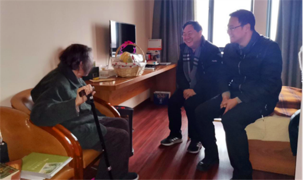石道金院长走访慰问退休教师 1月15日,石道金院长、周凯副书记和工会主席刘龙青一行看望了吴静和等退休老教授,与他们亲切交谈,询问他们的生活和身体状况,对他们长期以来对学院的关心和支持表示敬意,衷心地祝愿他们新年快乐、健康长寿,并为他们送上了新春祝福。多年来,学院一直非常关心退休教师的生活,每年学院领导都会去亲自慰问退休教师,逢年过节还会送上学院的祝福,使退休老教师们感受到了万象城官网大家庭浓浓的人文关怀。