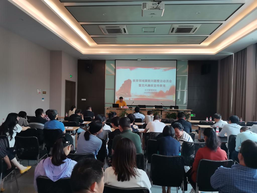 学院召开教育领域腐败问题整治动员暨党风廉政教育宣传教育大会 5月27日,学院在印象农林天目厅会议室召开教育领域腐败问题整治动员暨党风廉政教育宣传教育大会,会议由党委书记周凯主持,全体教职工参加会议。周凯书记主要围绕重点领域权力运行、科研经费使用、违规兼职和师德师风方面四个方面进行了重点解析,他结合具体案例,要求全体教职工增强廉政风险意识,依法依规做好工作,积极营造风清气正的学院氛围。会上还播放了观看了党风廉政教育宣传片