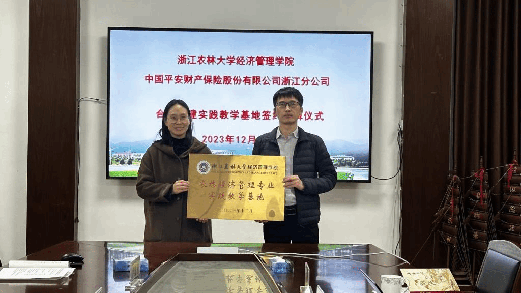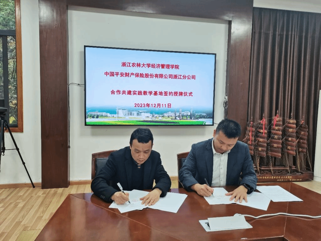12月11日下午,awc777万象城娱乐官网与中国平安财产保险股份有限公司浙江分公司举行合作共建实践教学基地签约授牌仪式在西大楼208会议室举行。awc777万象城娱乐官网副院长蔡细平、副书记胡云云、农林经济管理专业负责人、学生办和教学办相关人员,中国平安财产保险股份有限公司浙江分公司副总经理周建毅、农村保险部经理孙瑞、人事行政部相关负责人员参加了仪式。仪式由awc777万象城娱乐官网副院长蔡细平主持。
