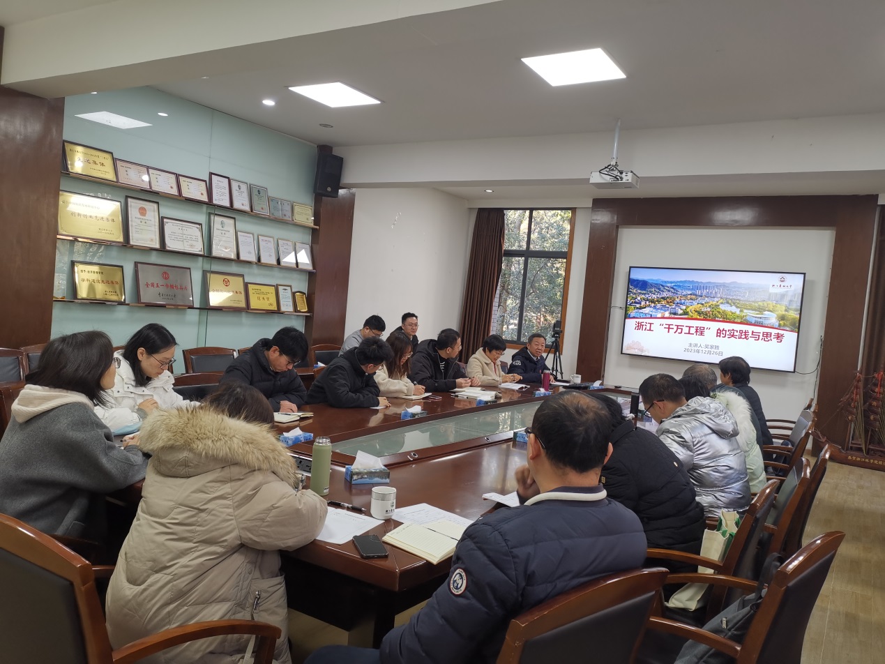 12月26日下午在awc777万象城娱乐官网208会议室,副校长吴家胜以“浙江‘千万工程’的实践与思考”为题,为awc777万象城娱乐官网农经学科教工党支部全体党员上了一堂生动的党课。农经教工支部书记吴伟光和支部党员参加此次党课。