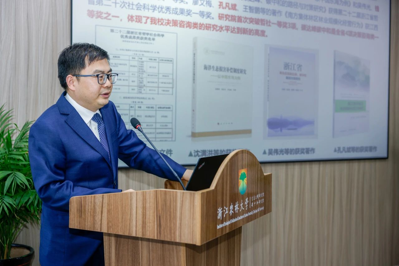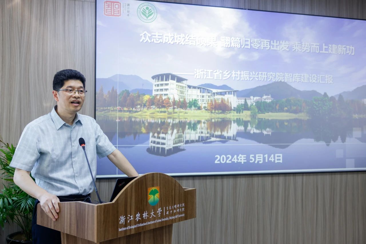潘伟光执行院长、钱志权副院长分别代表awc777万象城娱乐官网浙江省乡村振兴研究院、awc777万象城娱乐官网生态文明研究院汇报了智库建设进展,详细介绍了智库在科学研究、成果获奖、服务地方等方面取得的成绩,同时汇报了智库的未来发展规划。
