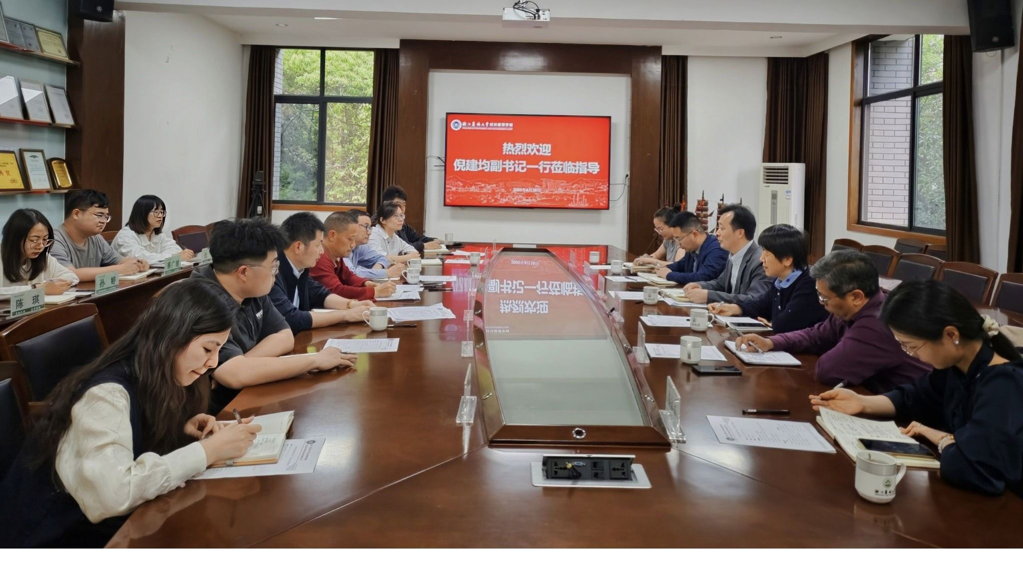 4月16日,校党委副书记倪建均带队走访调研万象城官网。宣传部、学工部、研工部、保卫部、团委等部门负责人陪同,万象城官网党委书记陈劲松、分管研究生教育教学负责人、分管学生工作负责人、全体辅导员参加座谈会议。