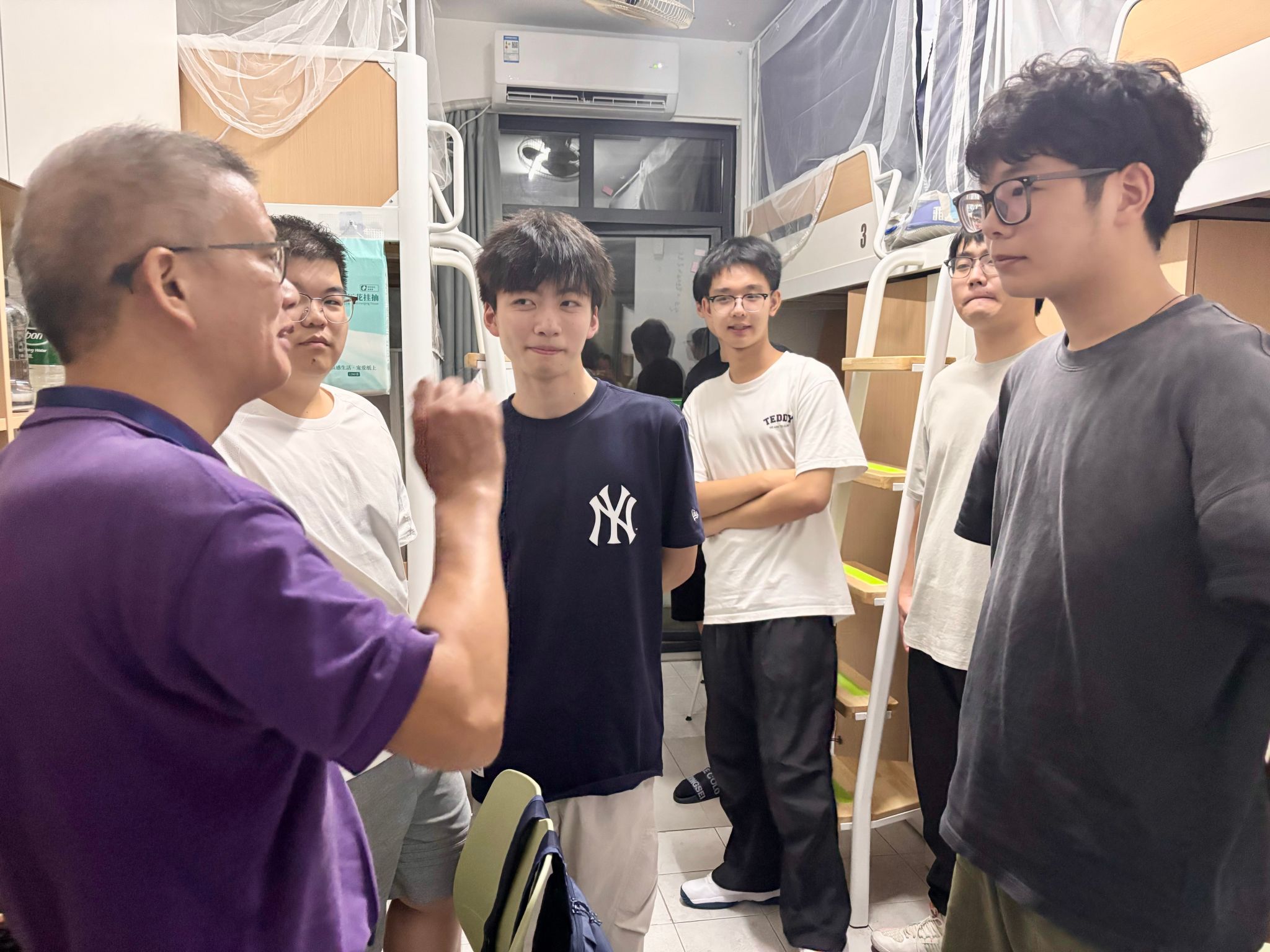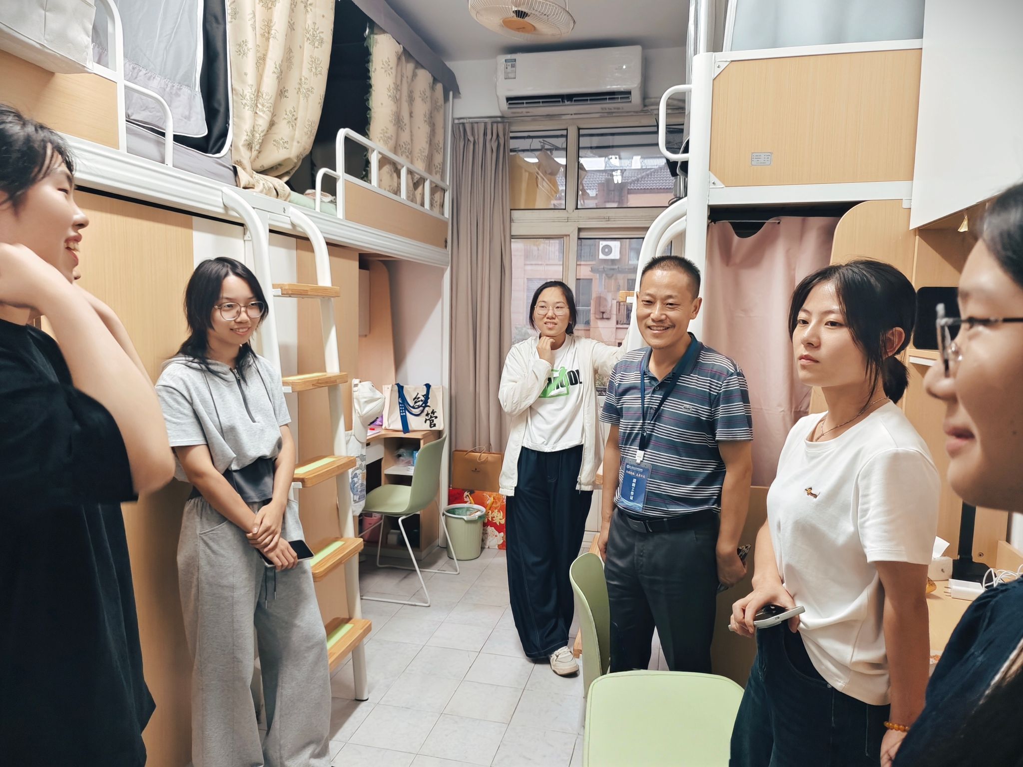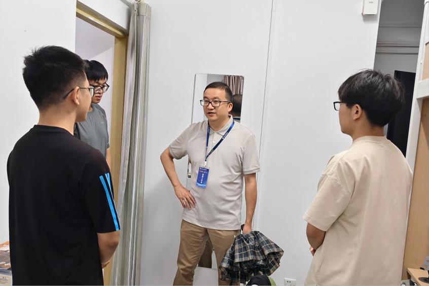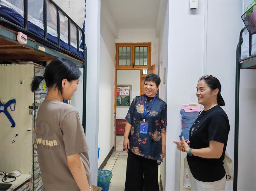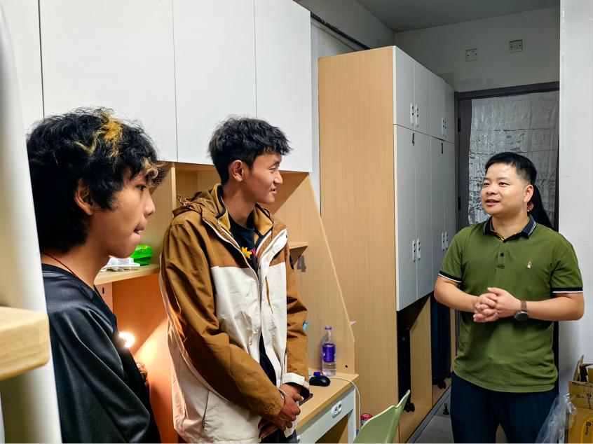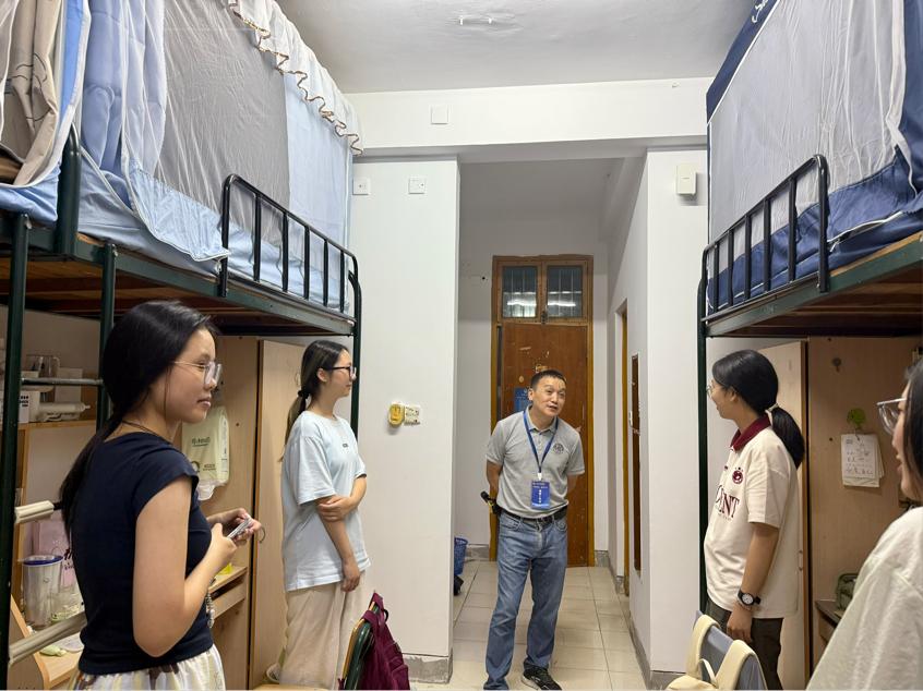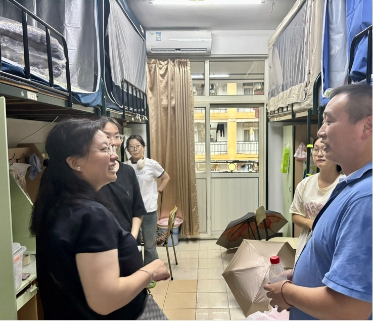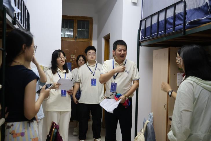 学院领导班子到新生宿舍走访慰问,向新生表示祝贺,并希望同学们尽快调整好状态,投入到新一阶段的学习中去。