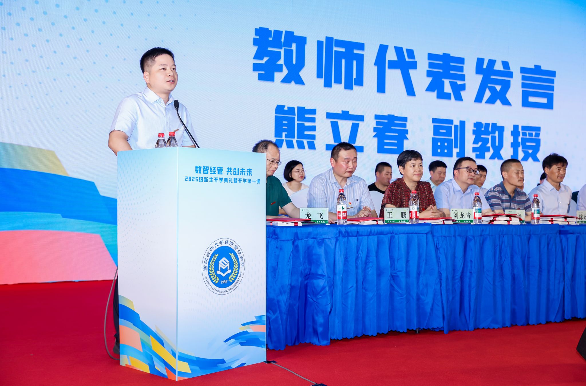仪式上,应用经济学学科熊立春老师代表教师发言,他回顾了自身过往的学术之路,希望同学们保持好奇、学会独立、拥抱生活。