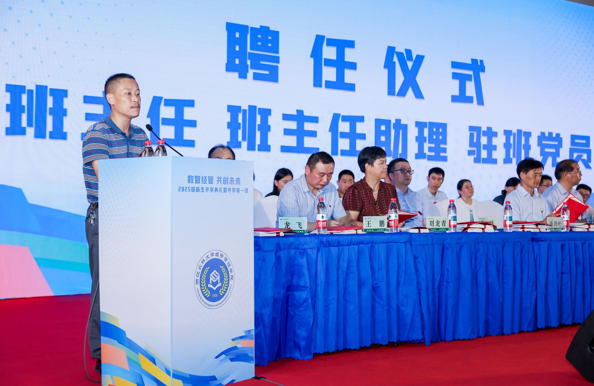 院党委书记陈劲松宣读班主任、班主任助理、驻班党员文件,强调通过师生1+1+N行动,全方位助力新生成长。主席台领导老师为受聘师生颁发证书。