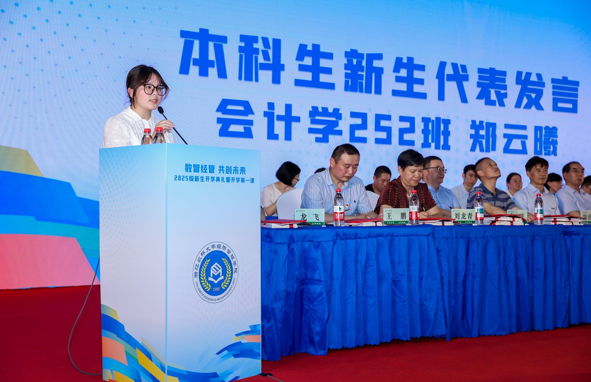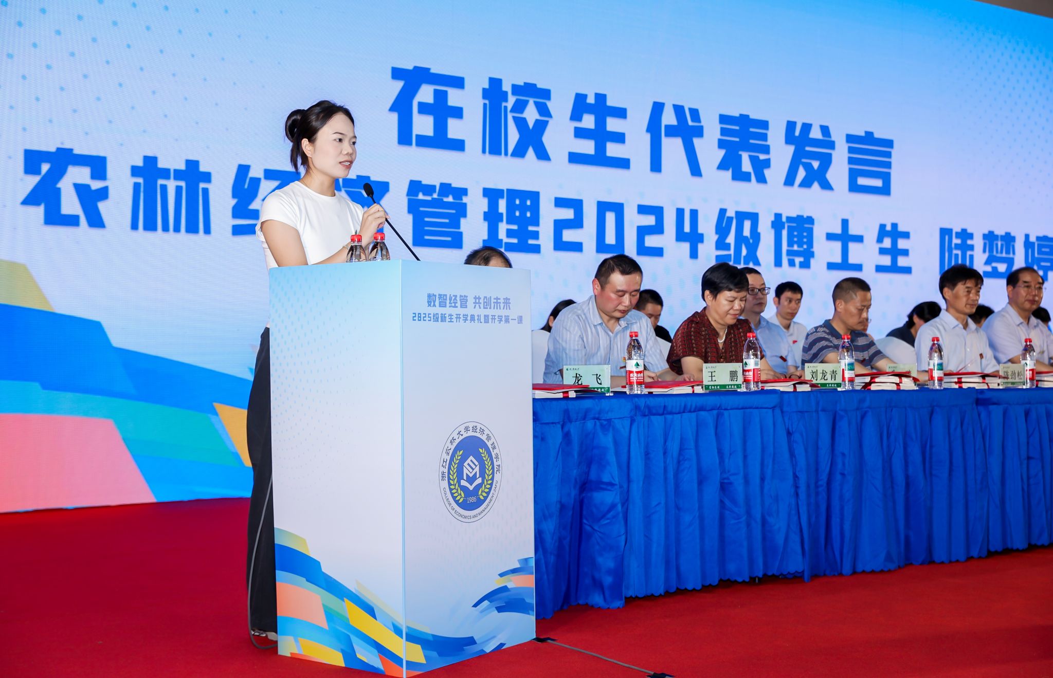 会计学252班郑云曦作为本科生代表,于陌上花开之际,致谢过往,鼓舞同学们共践理想;农业管理2025级研究生程熙则代表研究生新生,承诺继续以坚韧和热忱之心,走好学术与人生的长路;农林经济管理2024级博士生陆梦婷作为在校生代表,分享了自己的求学心得,鼓励学弟学妹们勇于探索,深耕学术科研领域。