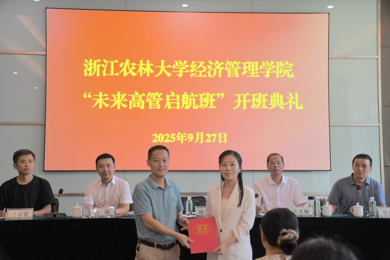 2025年9月27日下午,awc777万象城娱乐官网awc777万象城娱乐官网“未来高管启航班”开班典礼在衣锦校区顺利举行。学院党委书记陈劲松、副院长蔡细平,临安区经济和信息化局原局长汪其顺、中信银行临安支行副行长吕祎,外聘导师傅贤军、罗娅娟、赵云飞,中国工业合作协会合规能力建设分会秘书长王金华,以及助教团教师、首期26名学员共同出席。典礼由副院长蔡细平主持。