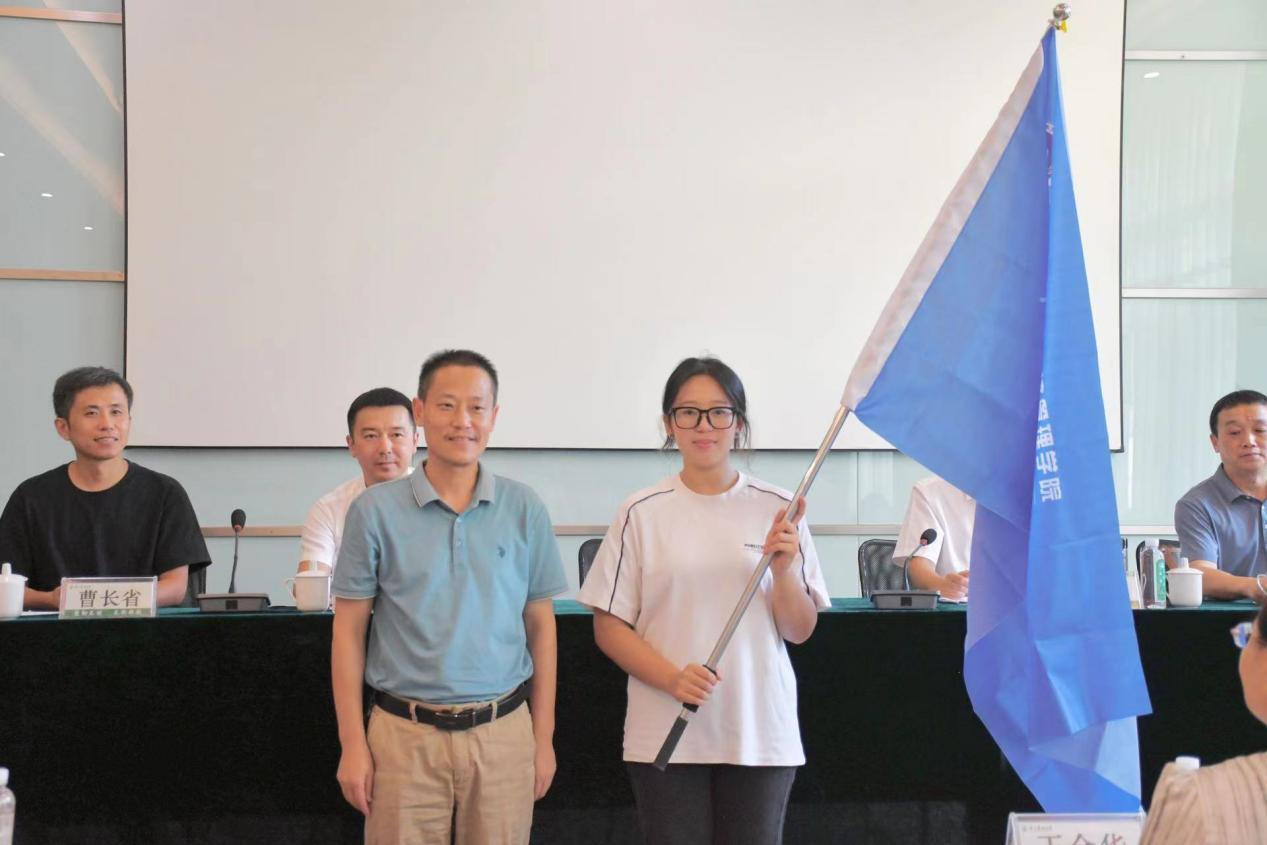 awc777万象城娱乐官网党委书记陈劲松向班长朱业成(右)同学授班旗