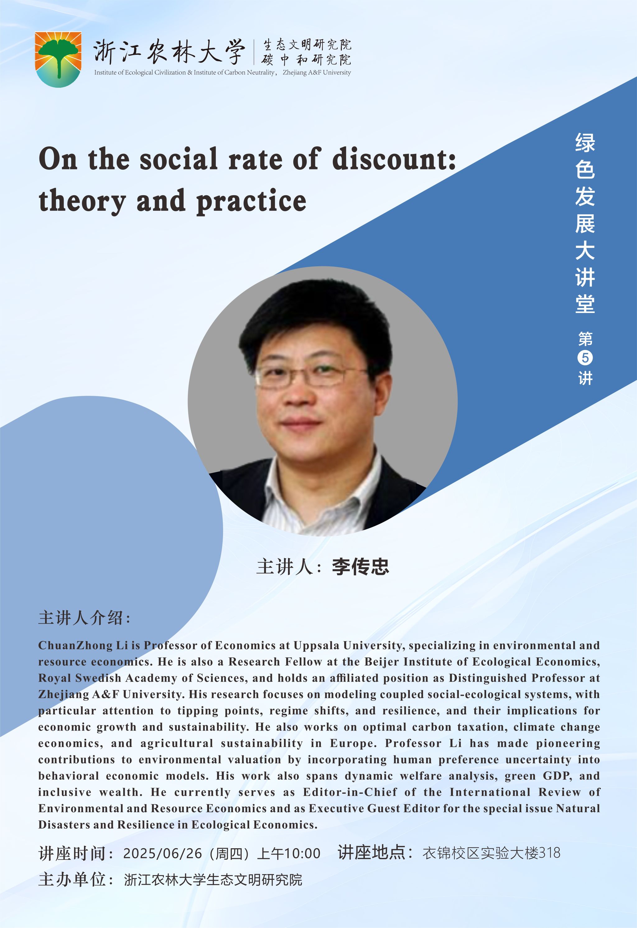 绿色发展大讲堂第5讲|On the social rate of discount:theory and practice