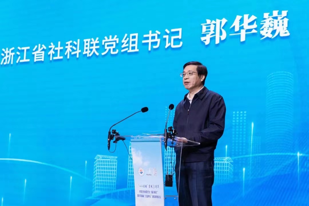 浙江省社科联党组书记郭华巍在致辞中就全面探讨推进中国式乡村现代化的路径和模式,主要提出三点要求:一要在守正创新上下功夫,创造出更多“新川模式”;二要在深入研究上下功夫,形成一系列“硬核成果”;三要在宣传转化上下功夫,推动理论研究“开花结果”。