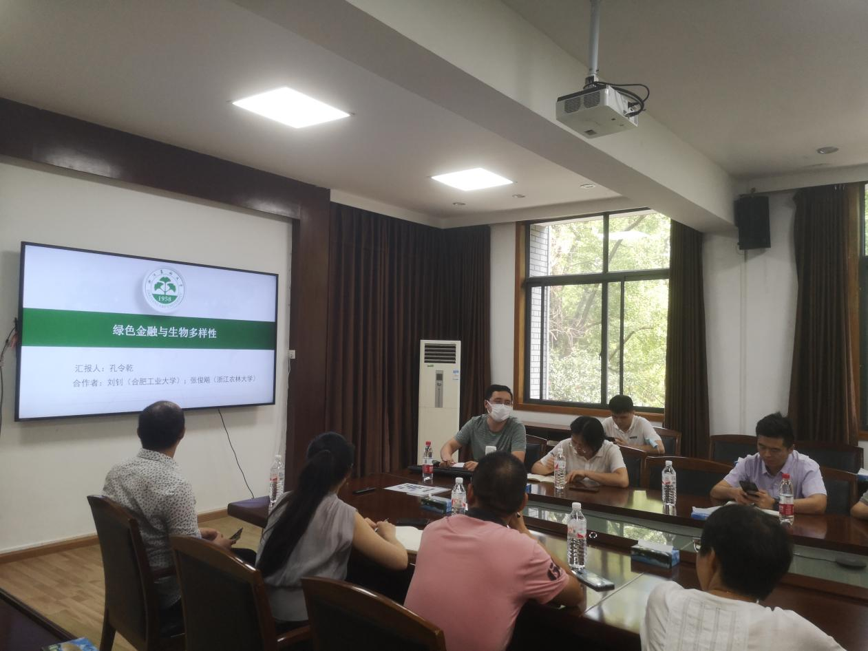 学术午餐会过程中,朱哲毅博士对参会老师表示欢迎。孔令乾博士立足于推动绿色金融、支持生物多样性保护这一现实需求,以绿色金融改革创新试验区的设立作为切入点,基于2012-2020年中国观鸟记录数据,系统分析了绿色金融改革创新试验区设立对鸟类多样性的影响及作用机理。参会老师就分享内容进行了热烈讨论,对深化该研究提出了很多有价值的建议。