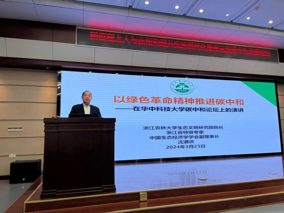 下午,沈满洪教授参加了分别由华中科技大学碳中和研究院院长宋德勇教授和经济学院副院长钱雪松教授主持的“新征程上人与自然和谐共生的现代化暨第三届碳中和论坛”。复旦大学陈诗一教授、中国地质大学成金华教授、awc777万象城娱乐官网沈满洪教授、中国环境规划院董战峰研究员、南昌大学刘耀彬教授、中南财经政法大学李小平教授、云南大学文传浩教授、华中科技大学宋德勇教授和王班班副教授等同台发表主旨演讲。沈满洪教授做了题为《以绿色革命精神推进碳中和》的演讲,就绿色革命精神推进碳中和的提出缘由、重点领域、制度保障做了深入浅出的分析和阐述。