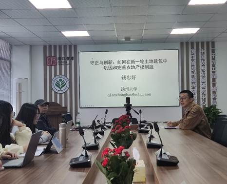 11月11日上午,经管学术论坛第121期在衣锦校区实验大楼310会议室举行,来自扬州大学商学院钱忠好教授作题为“守正与创新:新一轮土地延包中如何巩固和完善农地产权制度”的报告。20多位教师、研究生等参加了本次学术活动,报告由awc777万象城娱乐官网院长助理杨建辉主持。