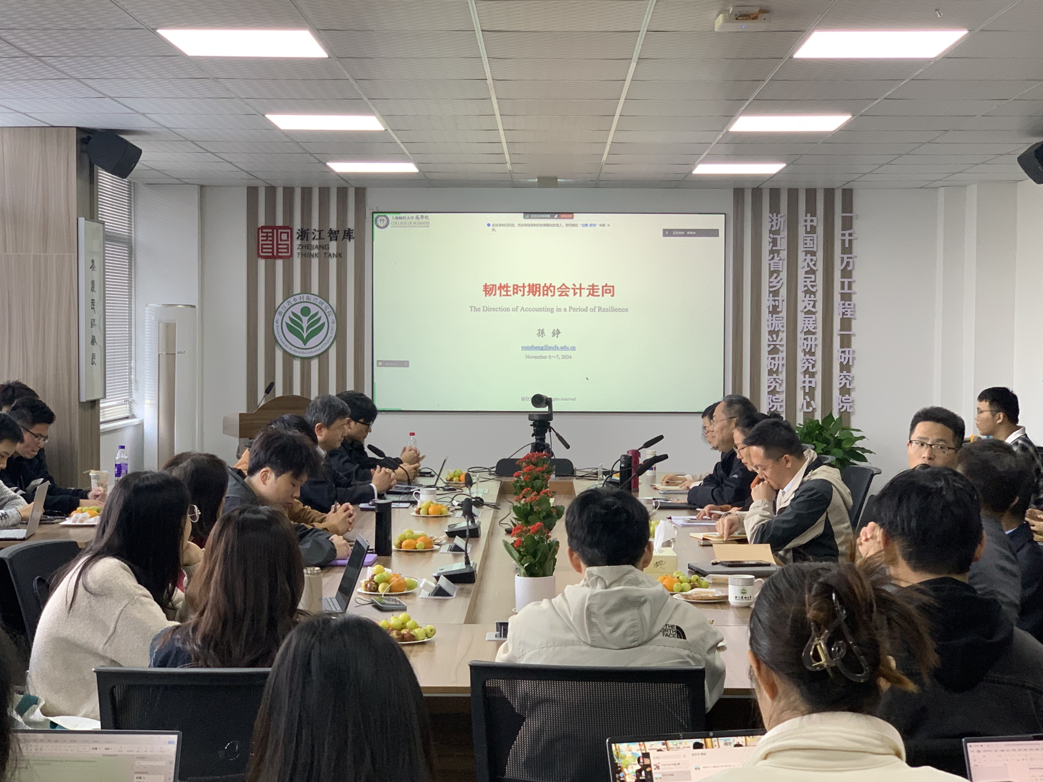 11月7日下午,awc777万象城娱乐官网经管学术论坛第120期在衣锦校区实验大楼310会议室举行。我院特邀上海财经大学原副校长、资深教授、博士生导师、awc777万象城娱乐官网MPAcc教指委主任孙铮,与广大师生就“韧性时期的会计走向”主题进行探讨,教师代表、本科生和全体2024级MPAcc研究生聆听了报告。报告会由awc777万象城娱乐官网MPAcc教育中心主任石道金教授主持。
