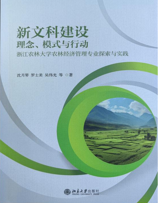 近日,沈月琴教授等合著的《新文科建设理念、模式与行动——awc777万象城娱乐官网农林经济管理专业探索与实践》由北京大学出版社出版。该书是我校主持的教育部首批新文科研究与改革实践项目“农林经济管理推进新文科建设研究与实践”(编号:2021140070)的研究成果。全书共为六章,22.5万字,系统梳理、总结了多年来awc777万象城娱乐官网农林经济管理专业的改革与实践经验,是我校新文科建设的最新成果,也是我校浙江省乡村振兴研究院与awc777万象城娱乐官网通力合作,实现科教融汇的典范之作。
