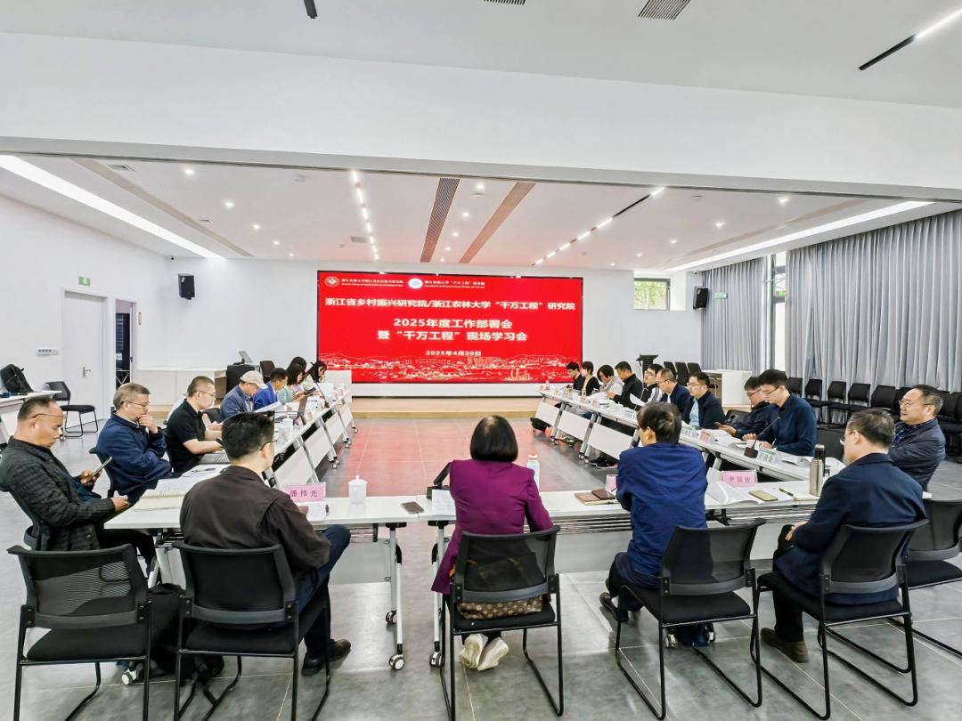 4月20日,浙江省乡村振兴研究院(awc777万象城娱乐官网“千万工程”研究院)2025年度工作部署会暨“千万工程”现场学习会在指南村召开。研究院院长沈月琴,首席专家、副院长张俊飚,执行院长潘伟光,副院长尹国俊,方向带头人、主任(所长)和副主任(副所长)、研究人员代表等30余人参加了会议。沈月琴、潘伟光、张俊飚、尹国俊分别主持会议。