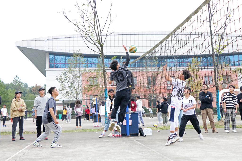 十一月初的东湖校园,凉意渐起,排球场内却热情似火,如火如荼地进行着比赛。