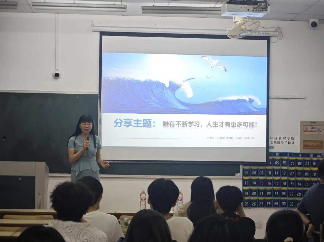 为加强学生干部思想引领,强化生涯规划意识,助力学生成长,5月29日,万象城官网邀请万马集团特聘讲师、万马联合控股集团医疗耗材事业部总经理林静女士,为我院学生干部做《以“唯有不断学习,人生才有更多可能!”》主题讲座。