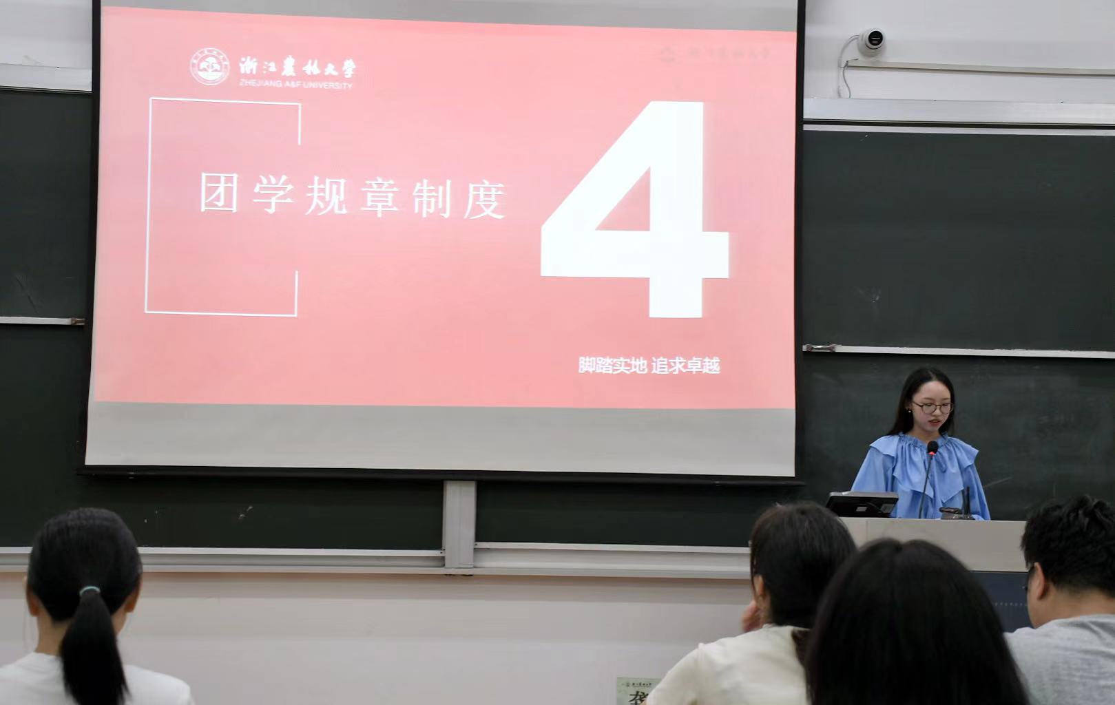 随后,团委副书记兼学生会执行主席朱静波介绍了团学部门架构以及规章制度,分享了自身工作经验与心得体会,并希望新同学们能够尽快融入团学大家庭,在工作中互帮互助,实现个人与集体的共同成长与进步。各部门负责人也依次上台介绍部门工作,并提出本学期工作规划,加深新干事对组织架构以及职能分工的理解。