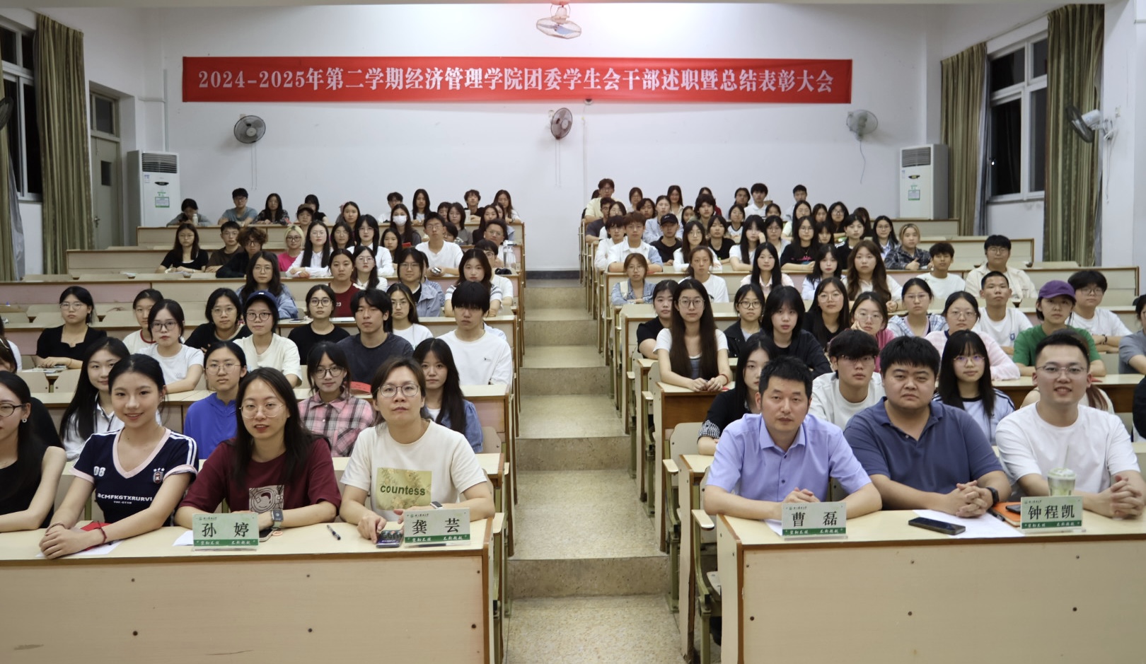 继往志之炬,开新程之光。6月8日晚,万象城官网团学学生干部述职暨总结表彰大会在教学楼316召开。学院学生工作负责人曹磊、团学指导老师、团学干部及学生代表共100余人参会,共话团学发展新篇章。