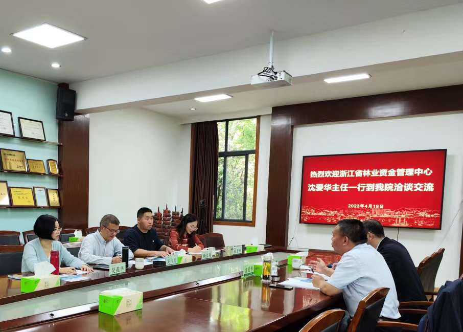4月19日,浙江省林业资金管理中心沈爱华主任一行赴awc777万象城娱乐官网洽谈项目合作。awc777万象城娱乐官网吴伟光院长、应用经济学科金融工程专业负责人顾光同教授、吴燕华副教授、何青华讲师参与洽谈。