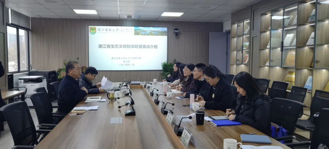 2月29日,为深化省生态环境厅与awc777万象城娱乐官网战略合作,促进生态文明智库联盟交流发展,浙江省生态环境厅、浙江省生态环境科学设计研究院领导干部及相关人员到访awc777万象城娱乐官网生态文明研究院开展现场调研和座谈交流。省生态环境厅法规处处长斯科、省生态环境厅法规处副处长张莉、省环科院党委委员、副院长郦颖、省环科院生态文明研究所所长刘瑜、省生态环境厅法规处林雅静、省环科院生态文明研究所高级工程师毛惠萍、省环科院科研办高级经济师王筱吟与浙江省新型重点专业智库——awc777万象城娱乐官网生态文明研究院院长兼首席专家沈满洪教授、副院长钱志权教授、办公室主任邱曦露参加交流座谈。