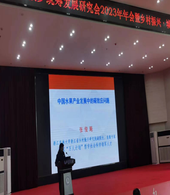 我院张俊飚教授应邀出席并做主旨报告。他报告的题目是“中国水果产业发展中的碳效应问题”,主要围绕我国水果产业发展过程中的碳排碳汇与碳效率等问题展开,依据大量数据分析以及水果产业发展轨迹演进变动趋势等,提出了未来水果产业如何优化布局、加大科技进步、提升生态经济效率和扩大净碳效应等对策建议。