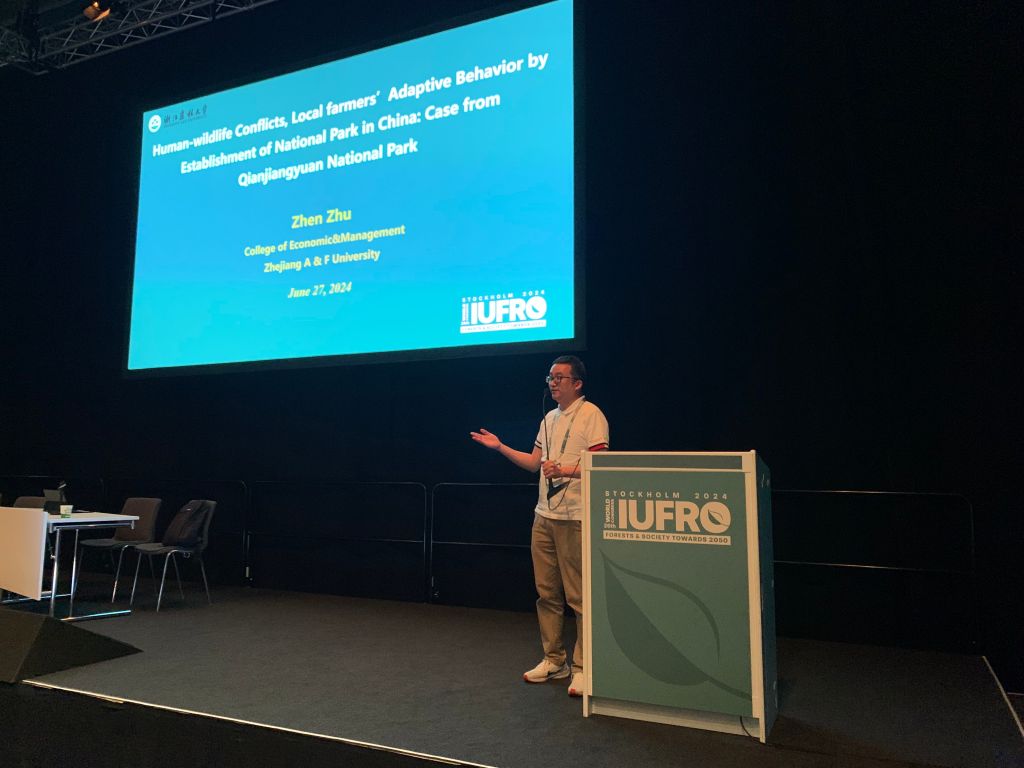 朱臻副院长参加2024年第26届国际林联世界大会 国际林业研究组织联盟(简称“国际林联”,IUFRO)第26届世界大会于6月23-29日在瑞典斯德哥尔摩召开。来自全世界4300多位代表参加本次盛会,本届会议的主题是“迈向2050年的林业与社会”。会议涉及大会报告、专题论坛、海报交流、成果项目展览和野外考察等不同内容,共计组织了200余场专题论坛和3500场涉及林业不同研究领域的精彩学术报告。我院朱臻副院长全程参加了本次会议。首先,在“Socio-ecological conflicts in forest ...