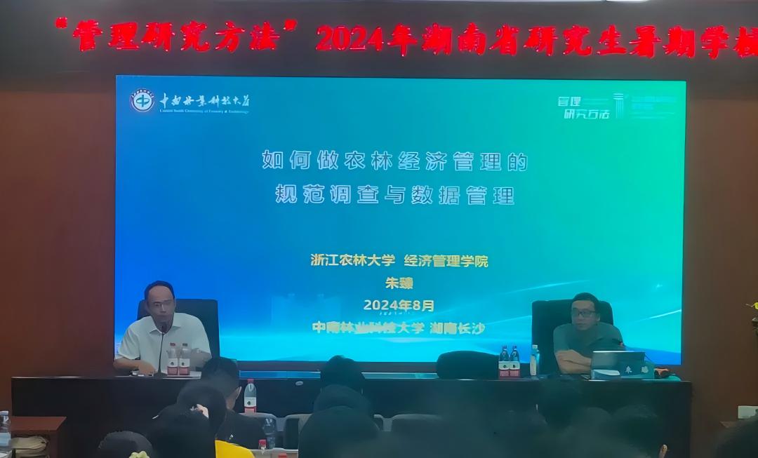朱臻教授受邀为“管理研究方法”湖南省研究生暑期学校师生授课 8月13日下午,受中南林业科技大学商学院邀请,朱臻教授为“管理研究方法”湖南省研究生暑期学校师生作了“如何做农林经济管理的规范调查与数据管理”的学术报告。朱臻教授通过丰富的案例,从科学研究的内涵与农林经济学科属性出发,系统阐述了规范调查与数据管理的重要性;结合我院开展调研的经验和案例介绍了开展农林经济管理一手实地调查的规范流程;最后系统介绍了农林经济管理研究相关领域的数据库建设与数据管理要点。报告...